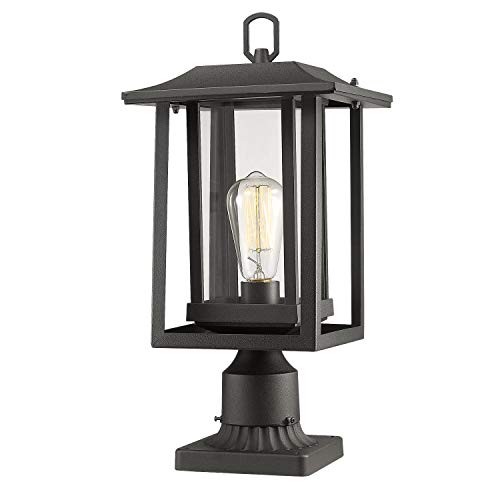 reddit Beionxii Outdoor Post Light | Modern Exterior Post Lighting Fixture with 3-Inch Pier Mount Adapter, Sand Textured Black with Clear Glass(9W x 16.75H) - A197P-1PK